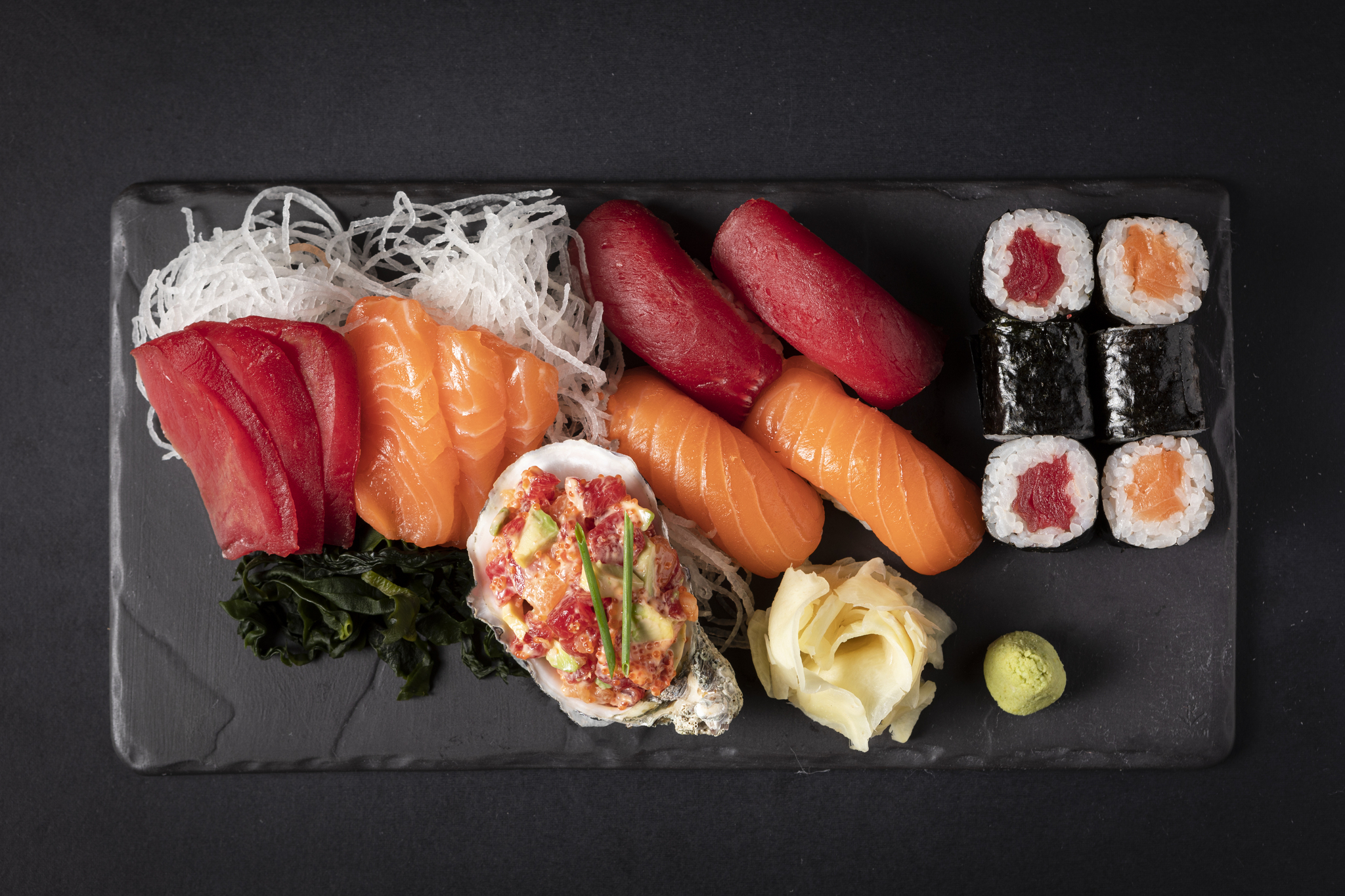 Сашими :лосось ,тунец.