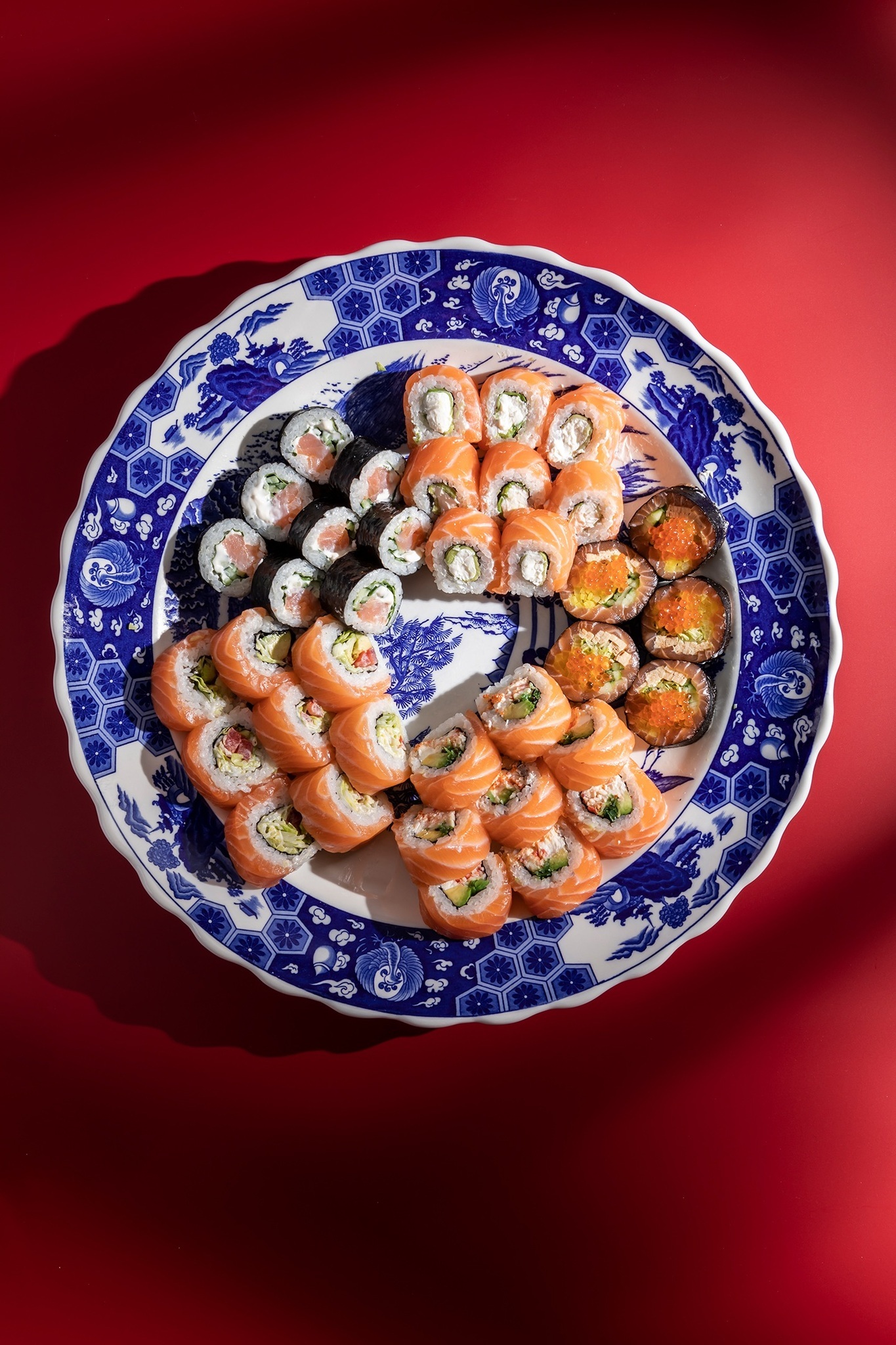 Сашими ролл с лососем, Ролл Филадельфия,Ролл Каифу,Ролл Кунсей,Ролл Сяке Бигаку.