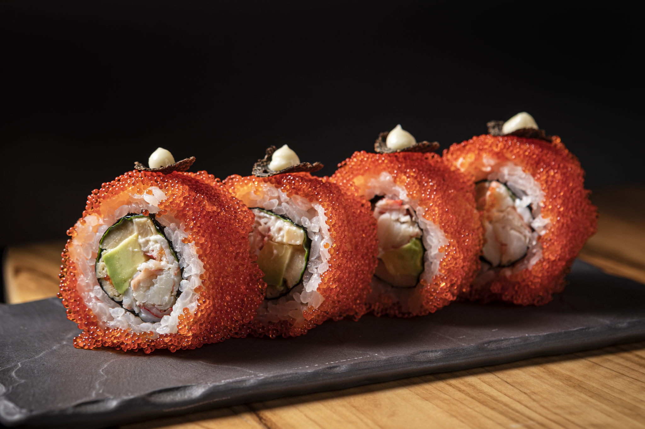Рис,нори,краб,тобико,авокадо,салат романо,трюфель,соус трюфельный,омлет,васаби,имбирь,соевый соу140 гр.