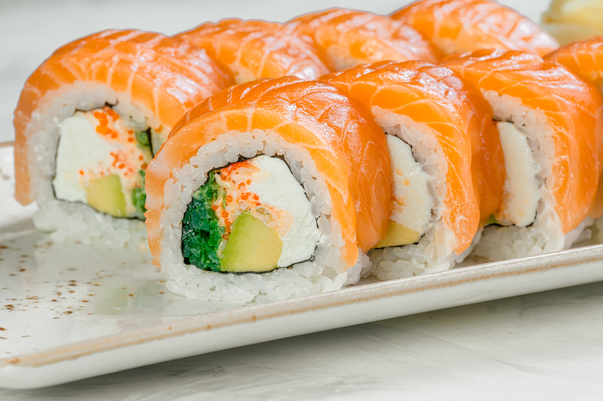 Краб,чука,лосось,авокадо,сливочный сыр,соус спайси.