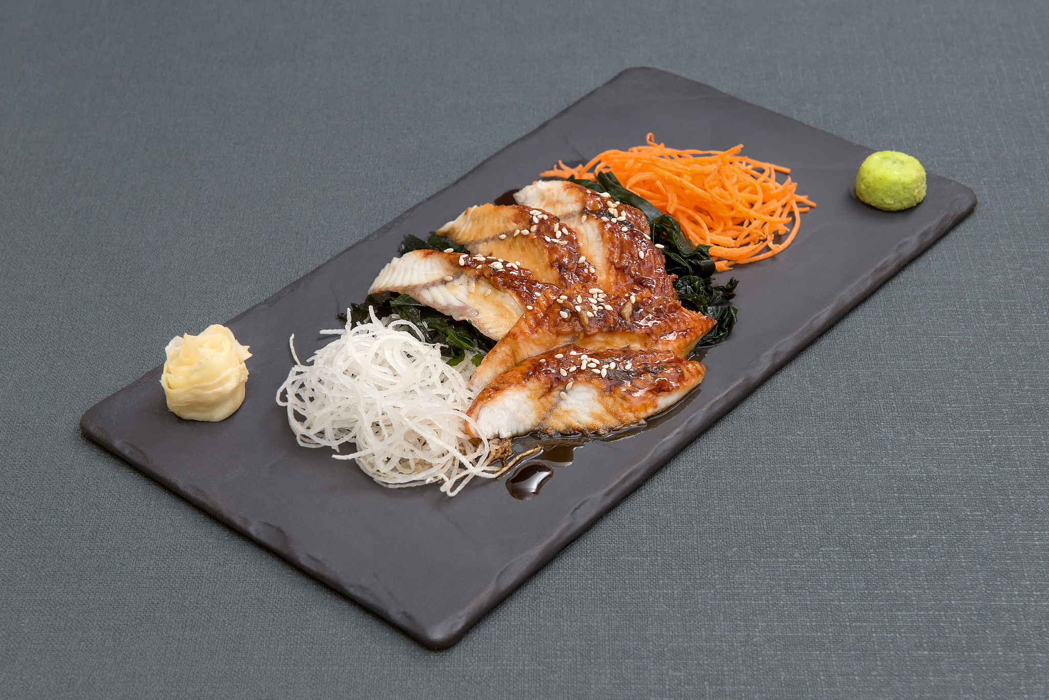 водоросли вакаме, кунжут, морковь и редька дайкон, кунжут.