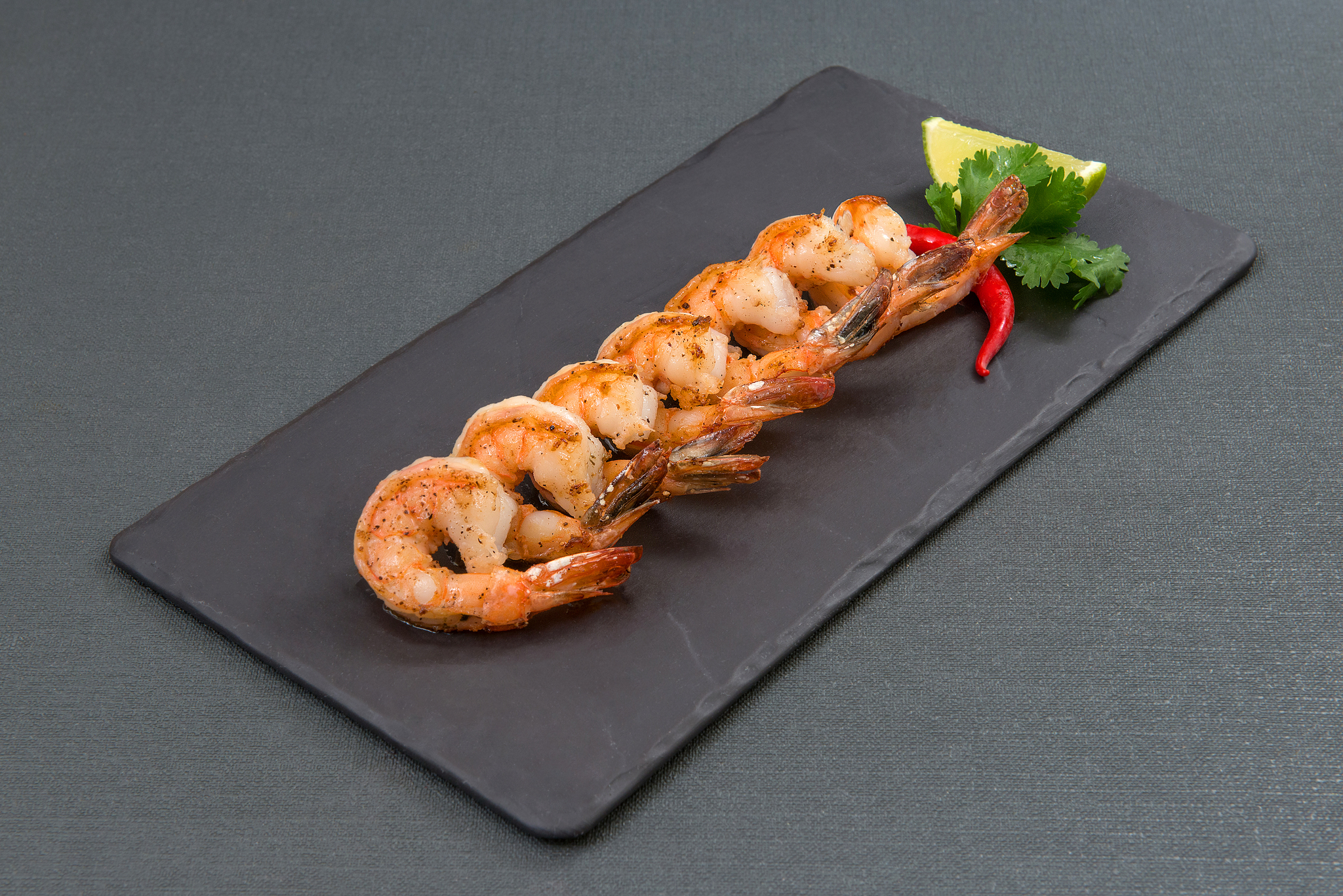 аргентинская креветка, кинза, перец чили, лайм